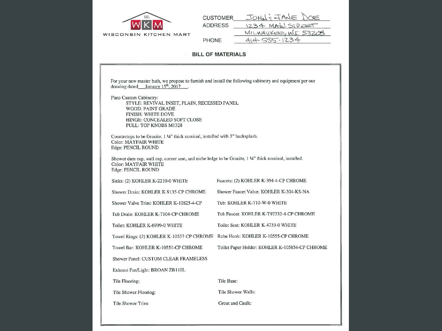With Wisconsin Kitchen Mart’s all-inclusive, up front pricing, you will only pay one price for the entire remodeling project. There’ll be no separate payments for the plumber and the drywaller; no appliance delivery costs, installation fees, or crazy tool usage charges. The Contract and Bill of Material you receive will cover all the expenses encountered during remodeling.